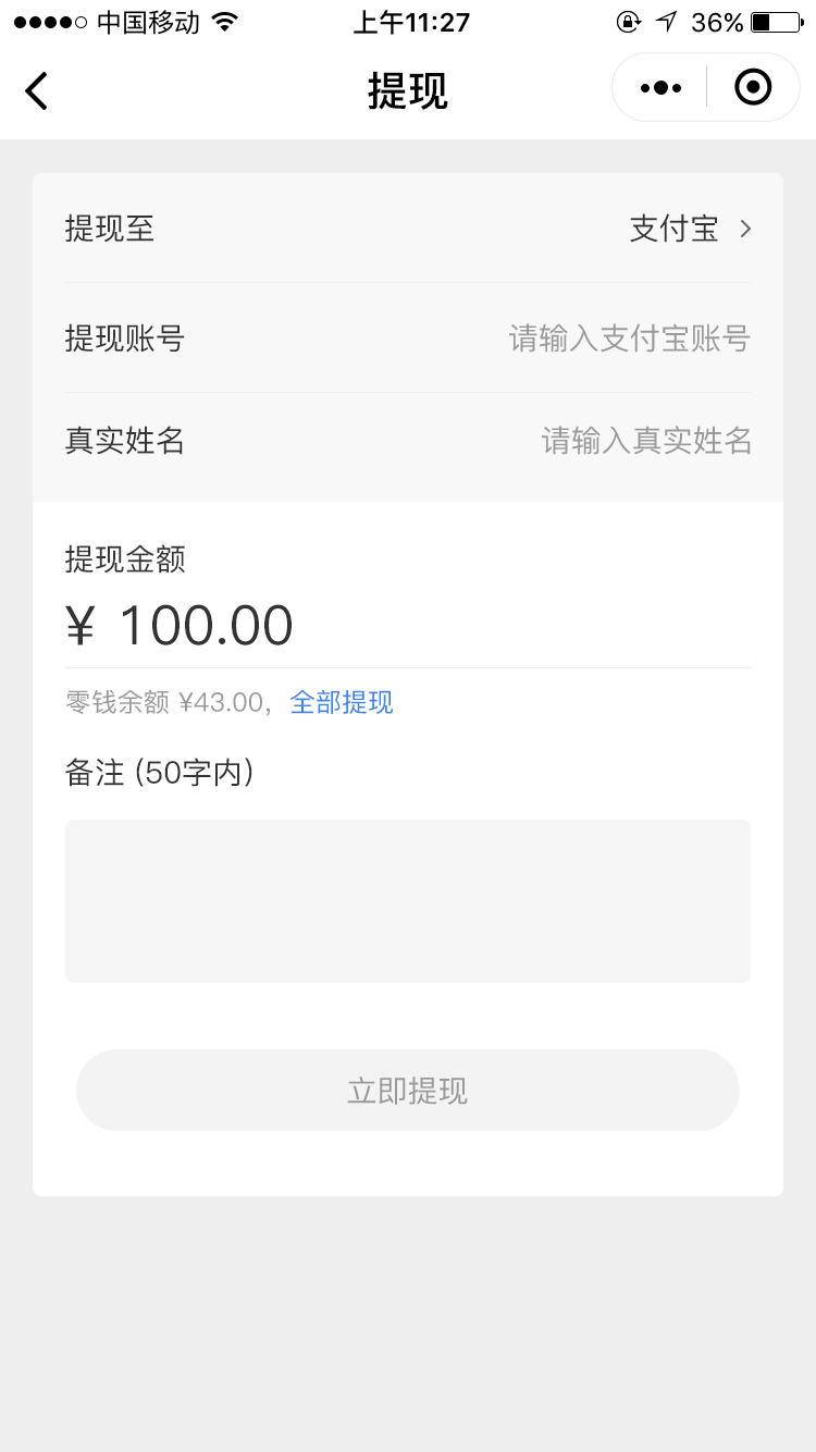 目前只支持手动结算,即商家根据推广员提现申请时填写的微信或支付宝账号,转账金额给具体帐号,再到后台操作确认。