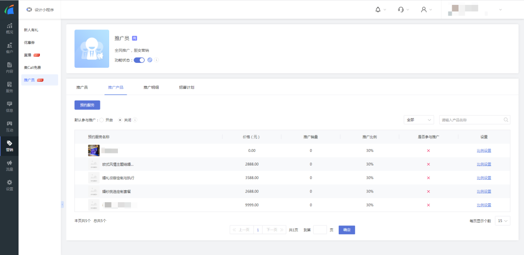 2. 管理员可进入到「管理后台-营销-推广员-推广产品」中添加预约服务为推广产品。